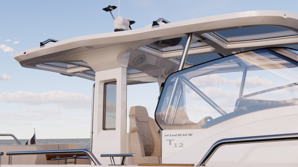 Den ombonade loungen ger maximal komfort, och när dagen övergår i kväll erbjuder T12 bekväma sovplatser för upp till fyra personer. Med sina 13 meter av ren prestanda och flexibilitet är T12 en perfekt kombination av en tuff daycruiser och en sportig walkaround.