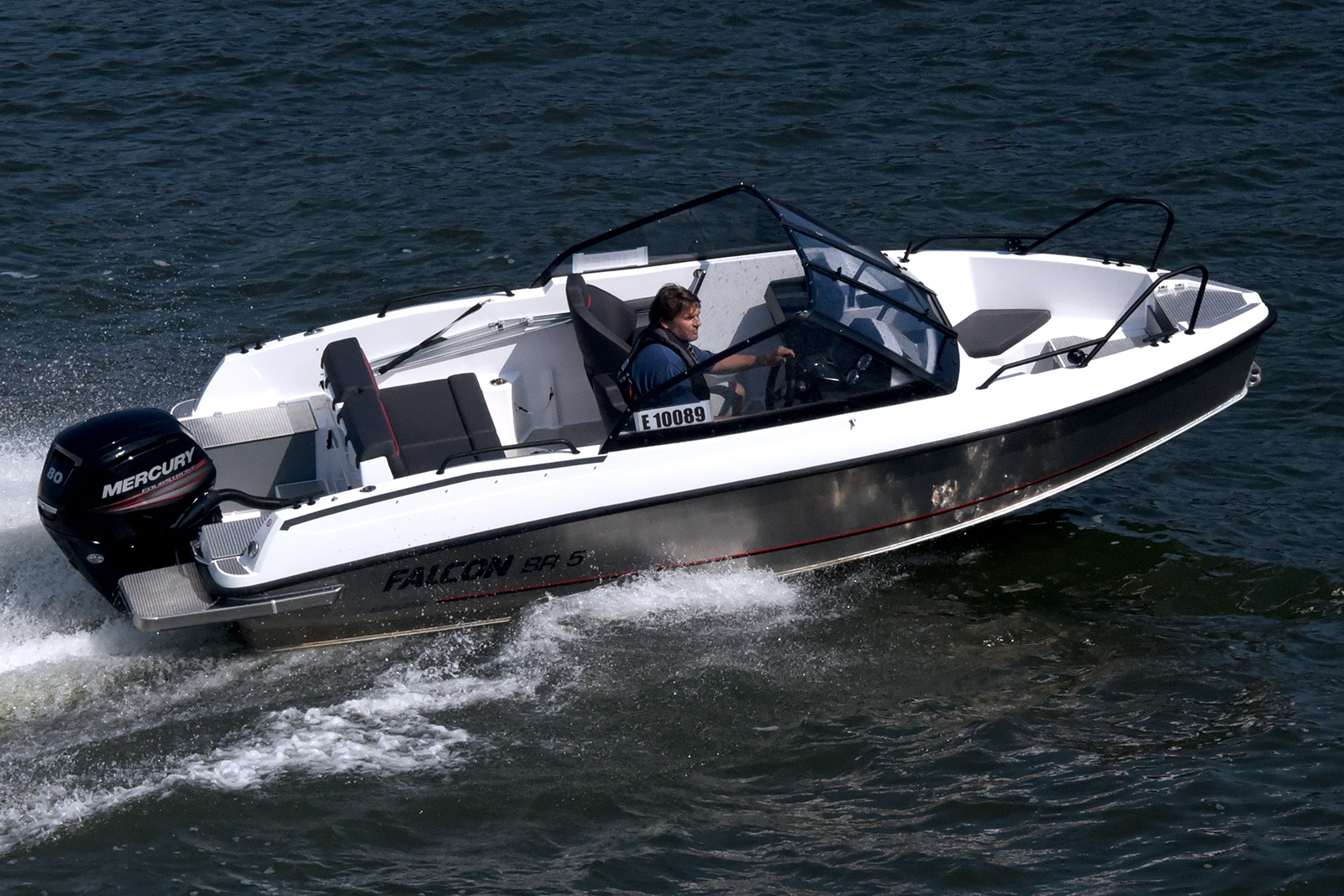 MARKNADENS STÖRSTA 5-METERS BÅT Falcon BR5 är en kaxig Bow Rider med sitt tysta patenterade skrov som gör det till ett stort nöje att vara ute på sjön. Båten är gjord för motorer upp till 80 hk men fungerar även bra med Mercury 60 hästare och presterar då en toppfart runt 30 knop. Akterifrån så […]